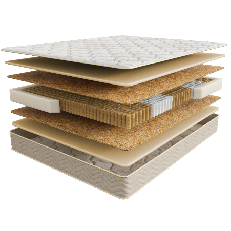 • Бикокос – 0,5 см. Инновационный синтезированный материал с полиэфирными волокнами. Прочность бикокоса в разы выше кокосовой койры, а значит наполнитель более долговечен. Бикокос имеет более жесткую поверхность, создавая упругое спальное место.
