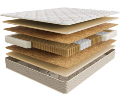 • Бикокос – 0,5 см. Инновационный синтезированный материал с полиэфирными волокнами. Прочность бикокоса в разы выше кокосовой койры, а значит наполнитель более долговечен. Бикокос имеет более жесткую поверхность, создавая упругое спальное место.
