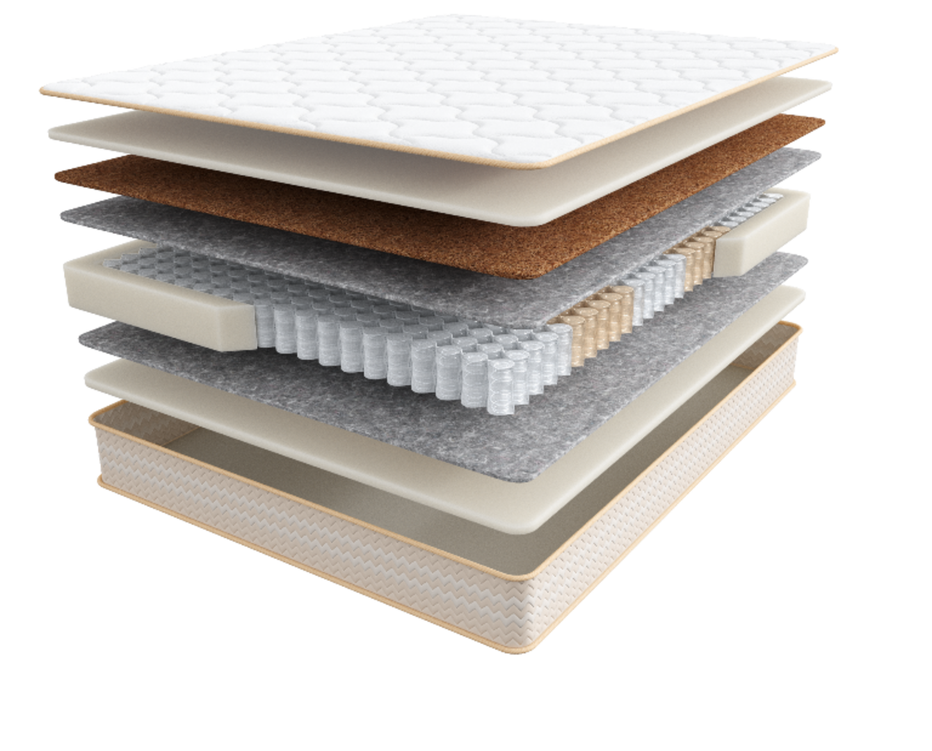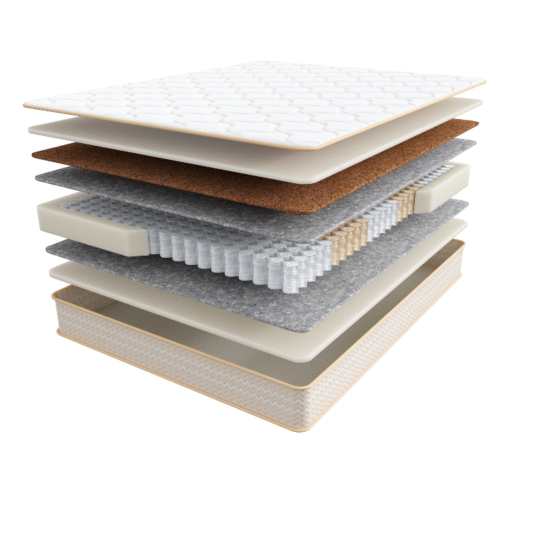 • Бикокос - 0,5 см. Инновационный синтезированный материал с полиэфирными волокнами. Прочность бикокоса в разы выше кокосовой койры, а значит наполнитель более долговечен. Бикокос имеет более жесткую поверхность, создавая упругое спальное место.