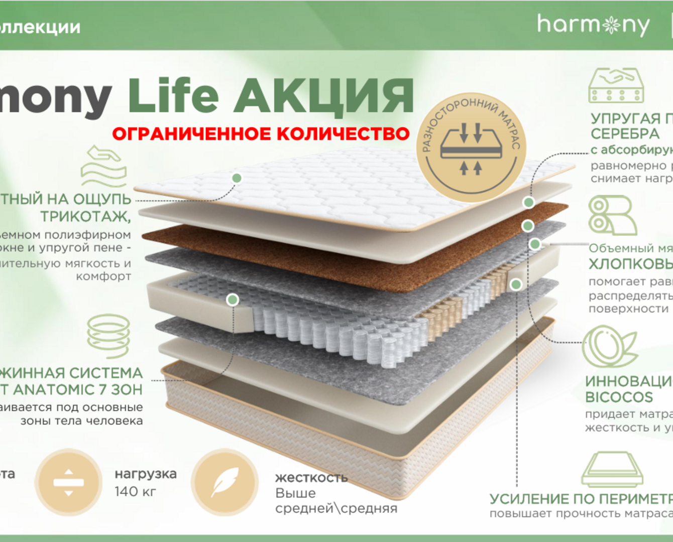 Главная Каталог Аскона Матрас Аскона Harmony Life АКЦИЯ (Лайф АКЦИЯ) 1600х2000