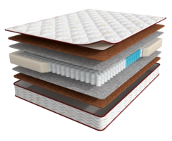 Кокосовая койра - натуральный воздухопроницаемый материал с долгим сроком службы. Придает матрасу дополнительную упругость, прочность и распределяет давление на пружинный блок.