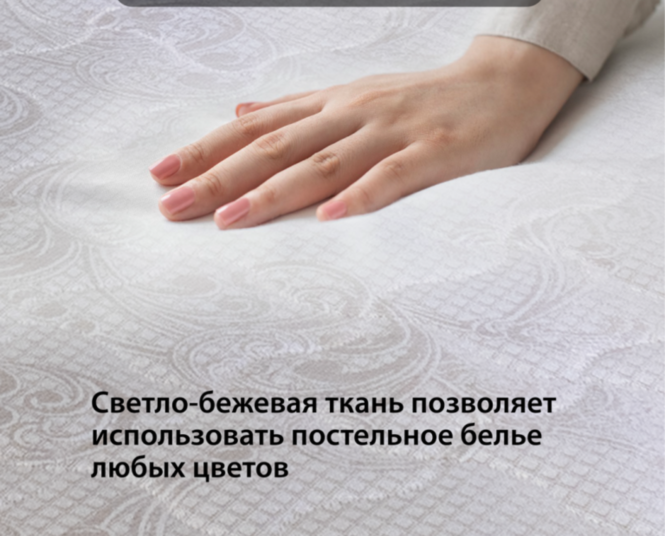 Чехол: Ткань матрасная "Жаккард" повышенной плотности (100% полиэстер), стеганая синтепоном