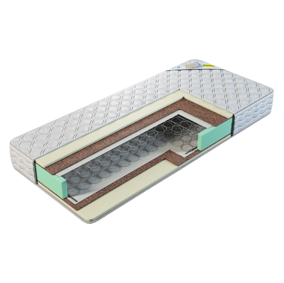 Наполнители: поролон, полезная для здоровья кокосовая койра, прочный спанбонд. Чехол матраса изготовлен из трикотажного полотна, прошитого холлофайбером.