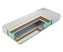 Наполнители: поролон, полезная для здоровья кокосовая койра, прочный спанбонд. Чехол матраса изготовлен из трикотажного полотна, прошитого холлофайбером.
