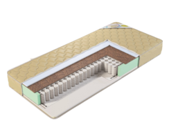 Матрас упругий, средней жесткости. Мягкий слой матраса состоит из современного качественного наполнителя - пенаполиуретана и слоя кокосовой койры. Эти материалы хорошо вентилируются, не впитывают пыль и влагу. Пена придает матрасу упругость, а кокос - жесткость.
