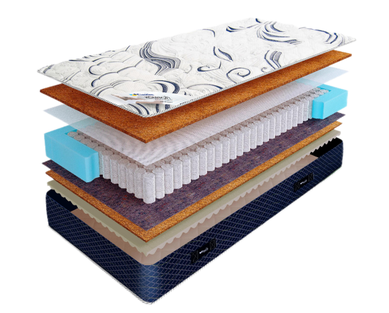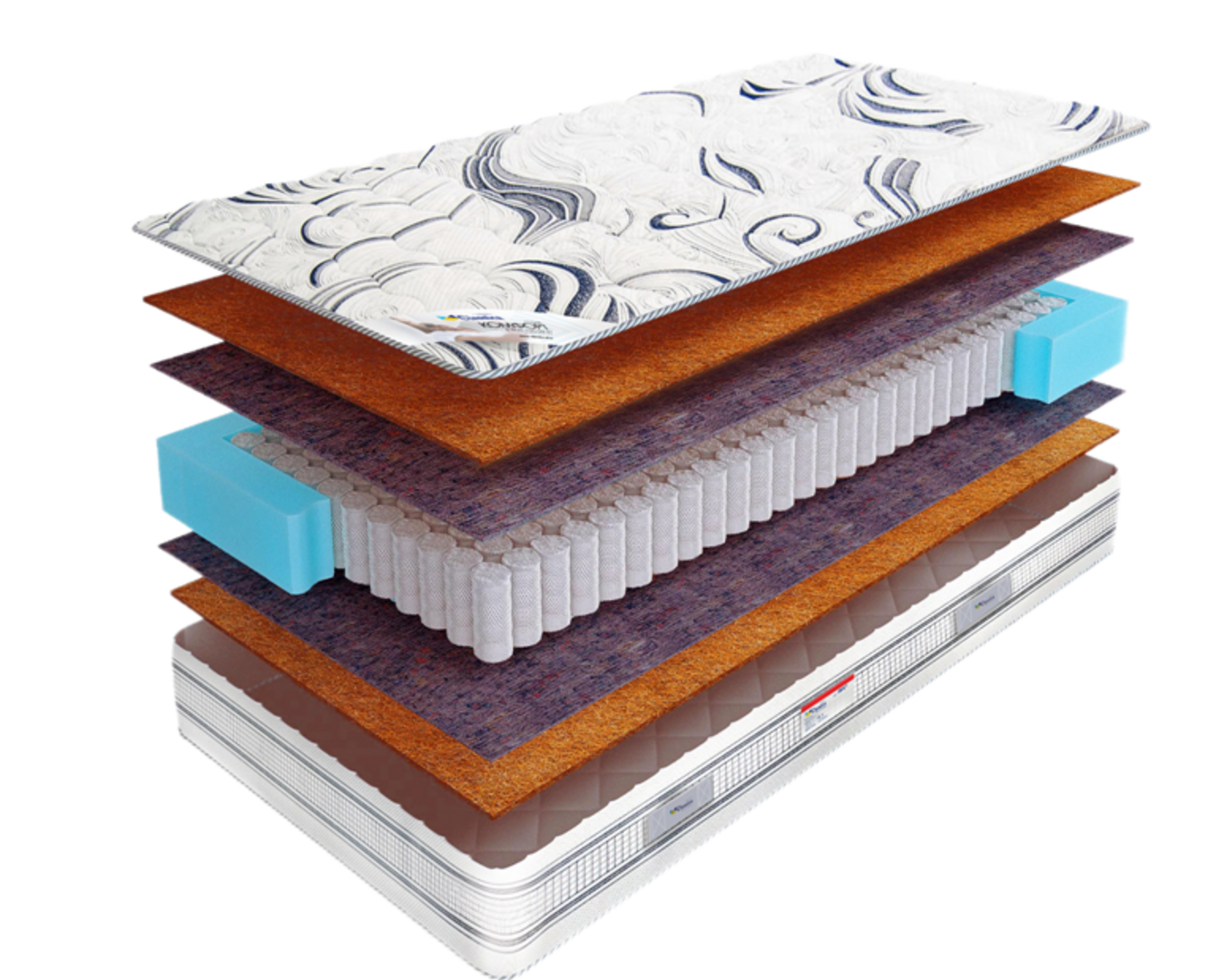 Наполнитель из натуральной кокосовой койры гарантирует упругость и эластичность матраса на долгие годы. Изделие исключает проявление любых аллергических реакций его владельца, обладает бактерицидными свойствами. Снаружи матрас исполнен из синтетической ткани «жаккард», стеганной синтепоном.