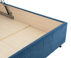 Современная кровать декорирована стежкой на изголовье и на передней царге, которая образует вертикальные линии.
