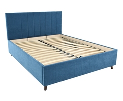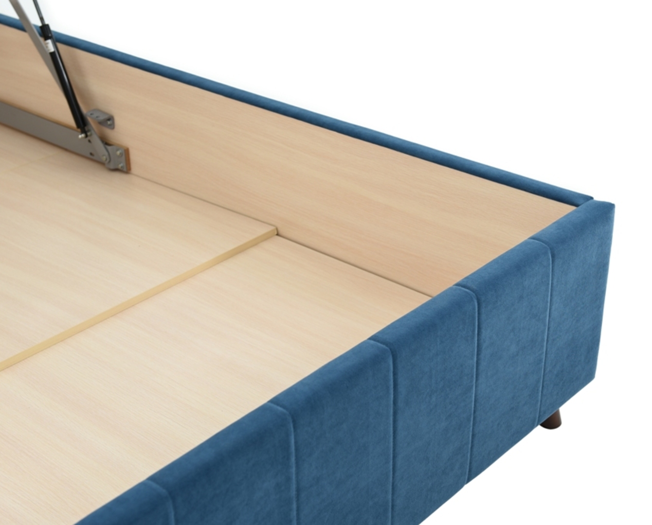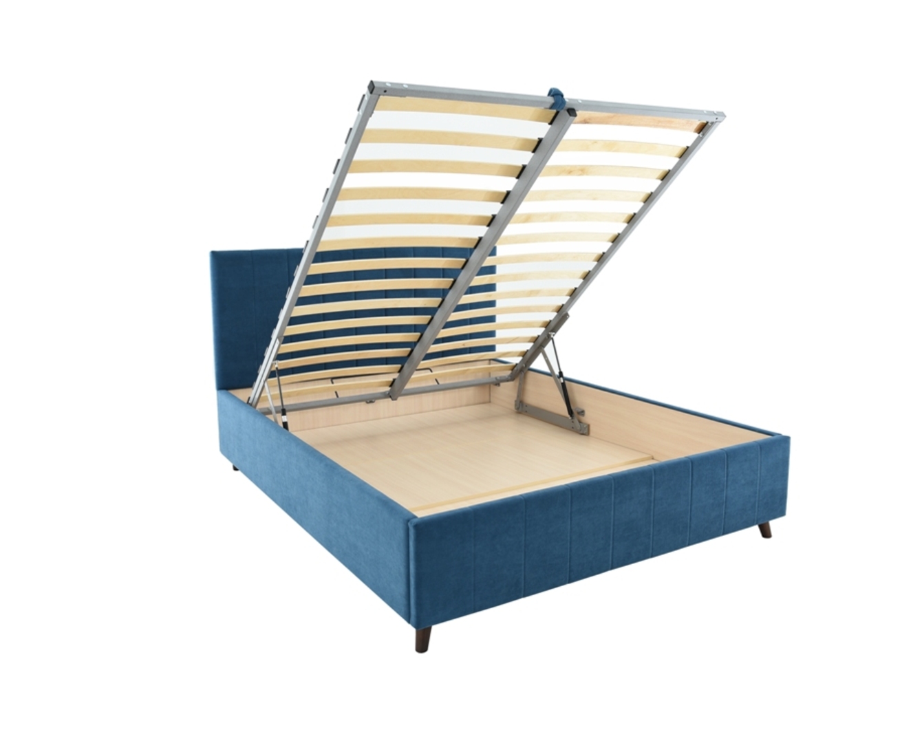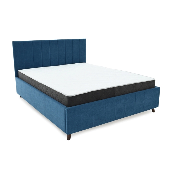 Современная кровать декорирована стежкой на изголовье и на передней царге, которая образует вертикальные линии.