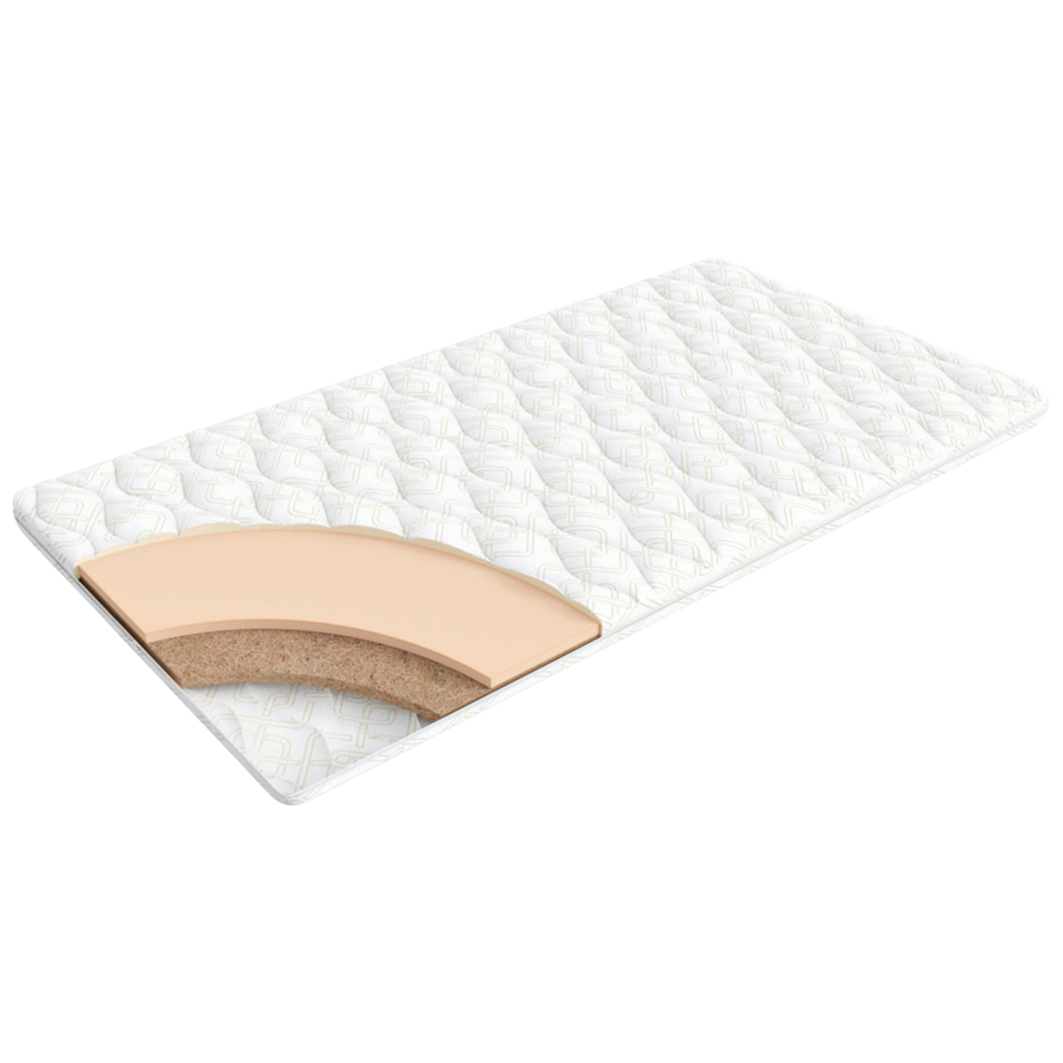 Модель Топпер Кокос выполнена с верхом из нежного трикотажа простеганого на основе холлофайбера. За исключением кокосовой койры остальные материалы изделия имеют искусственную природу, что продлевает срок эксплуатации модели и делает ее доступной по цене.